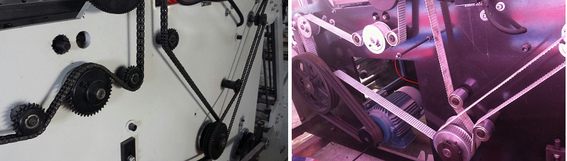 1.Driving system:New design driving uses chain instead of belt..The belt is easy to be damaged under the high speed running,and costed much after sold.
