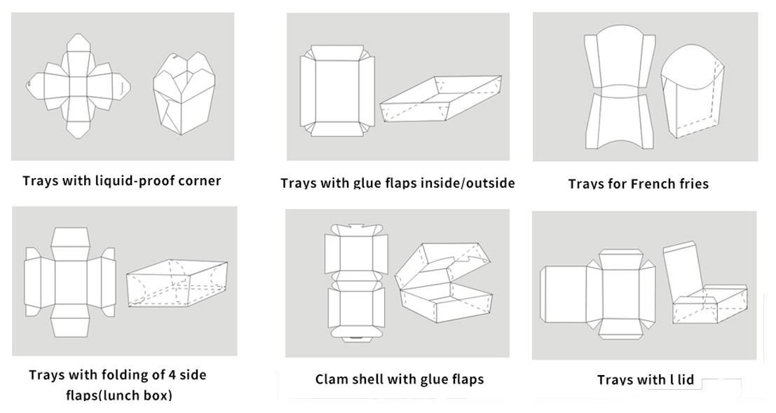 2. The versatility, can be on the same machine, only need to change the moulds can make different sizes of boxes, boxes, hamburger boxes, chip boxes, and other products.